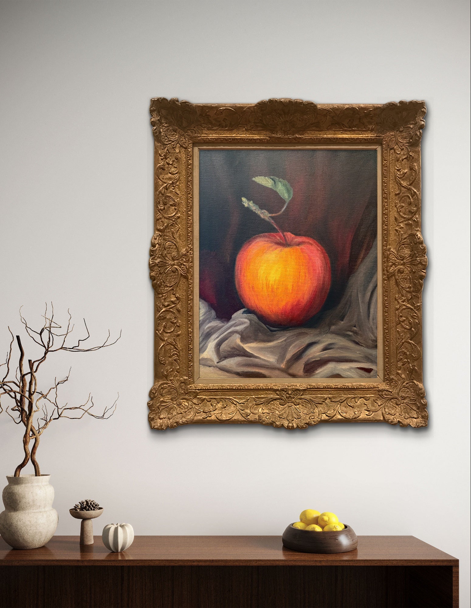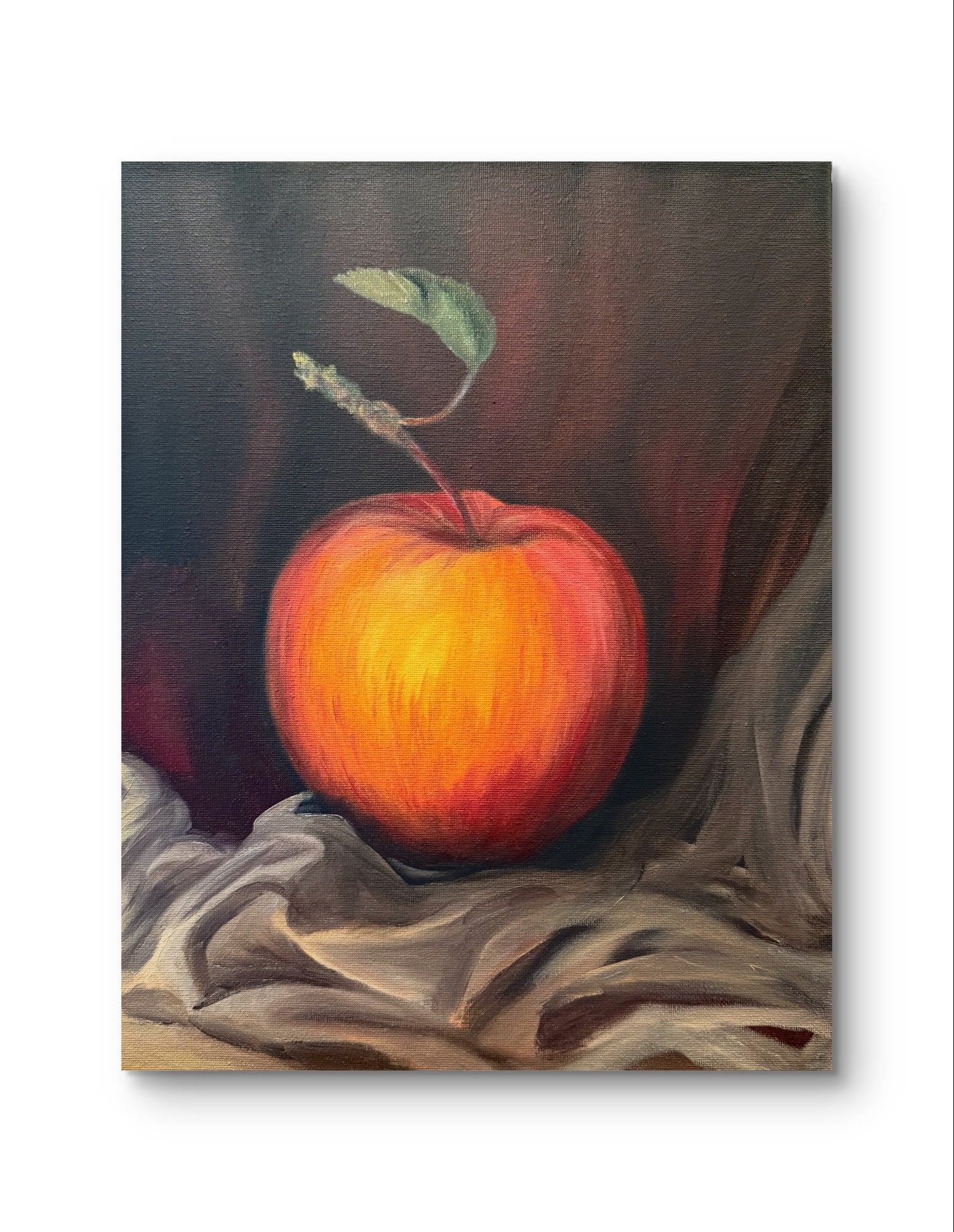 Discover "The First Bite," a captivating original oil painting measuring 14x11 inches. This artwork beautifully captures the vibrant essence of a crisp apple, symbolizing freshness and natural goodness. Its rich textures and vivid colors bring the fruit to life, making it a perfect piece to add warmth and a touch of nature to your living space. Elevate your decor with this stunning representation of simplicity and elegance.
